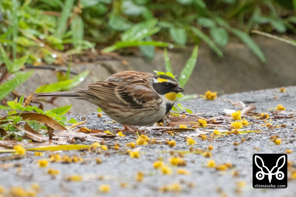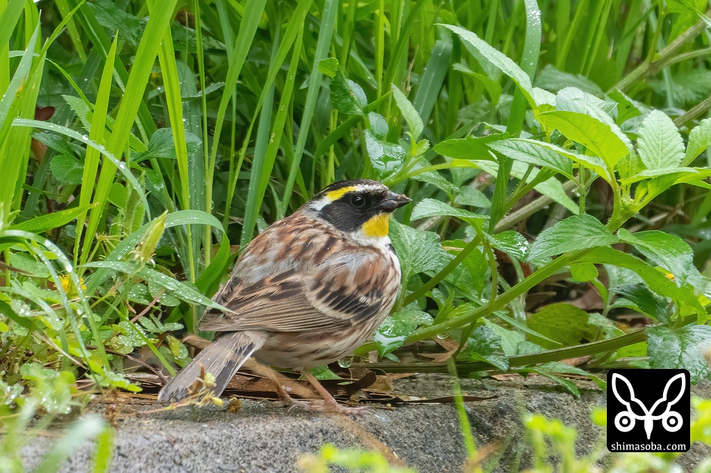 雨の中、ミヤマホオジロのオスが飛来しました。かなり疲れた様子で車両が横を通過しても逃げず、動きも緩慢でした。