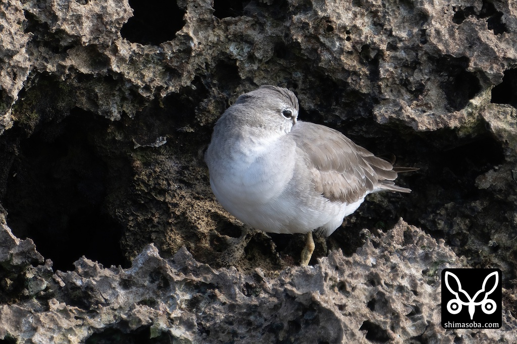 岩場で休むキアシシギ。