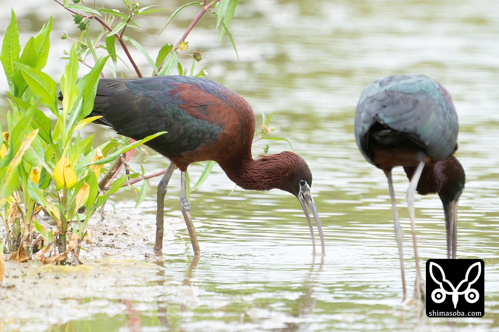 田んぼで仲良く餌探し。何かの幼虫らしきをメインディッシュにしていました。