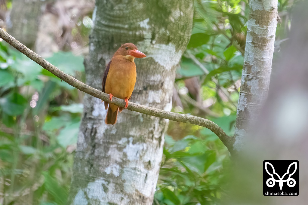 リュウキュウアカショウビンのメス。パートナーのオスも近くの茂みにいました。