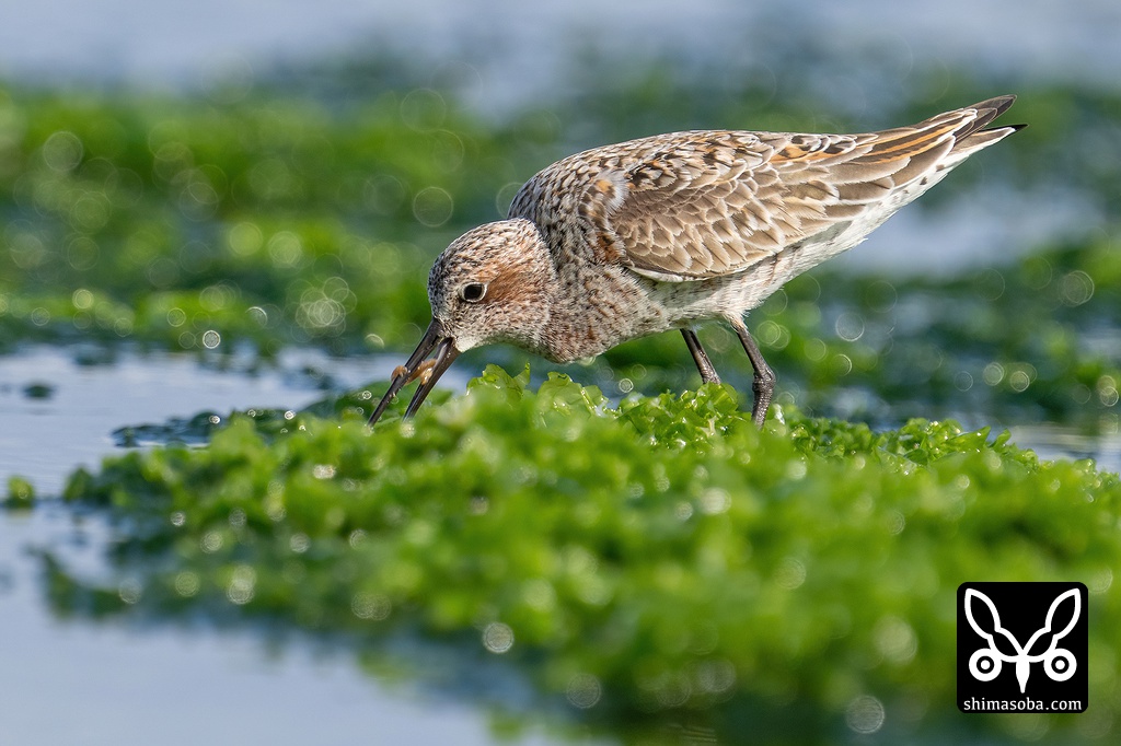 ゴカイを捕まえたサルハマシギ。