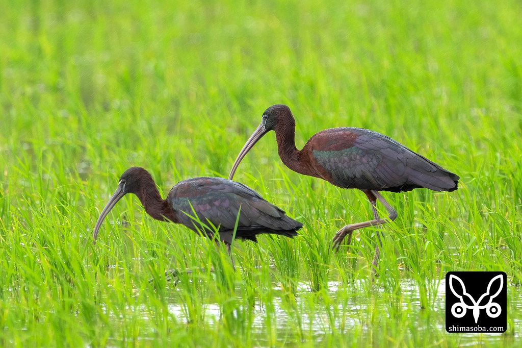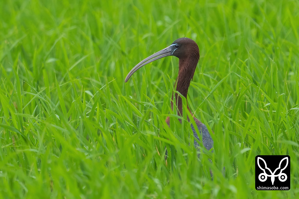 稲のすきまから顔を覗かせるブロンズトキ。