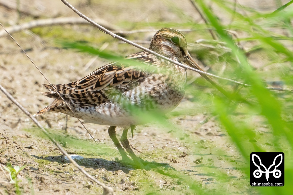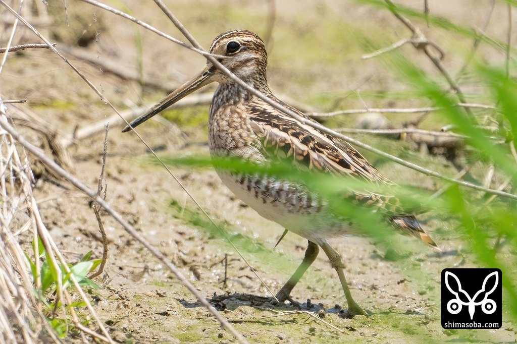 上と同個体を反対側から。タシギ、チュウジシギ、ハリオシギとジシギ3種が通過中。