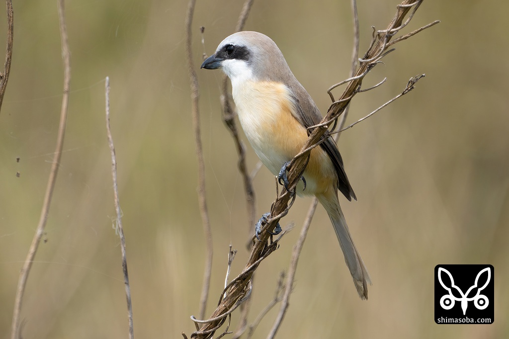 休耕田にはシマアカモズのオス。まだこの時季になっても複数個体が農地で観察できます。