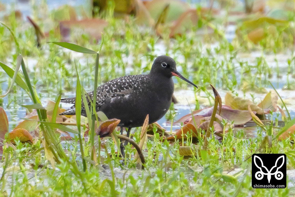 真っ黒な夏羽になったツルシギ。石垣島では秋の第1回冬羽がほとんどなので、一度見てみたかったです。