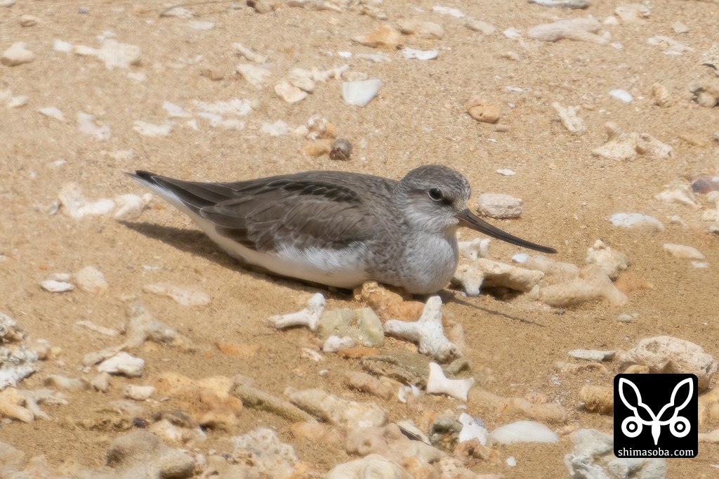 遅めの昼飯を海岸で食いながら鳥見。目の前にサルハマシギがやってきました。シギやチドリの渡りのピークがいったん落ち着いて海岸にはキアシシギとメダイチドリをメインにキョウジョシギやソリハシシギ、トウネンが滞在中。とにかくキアシシギが多いです。