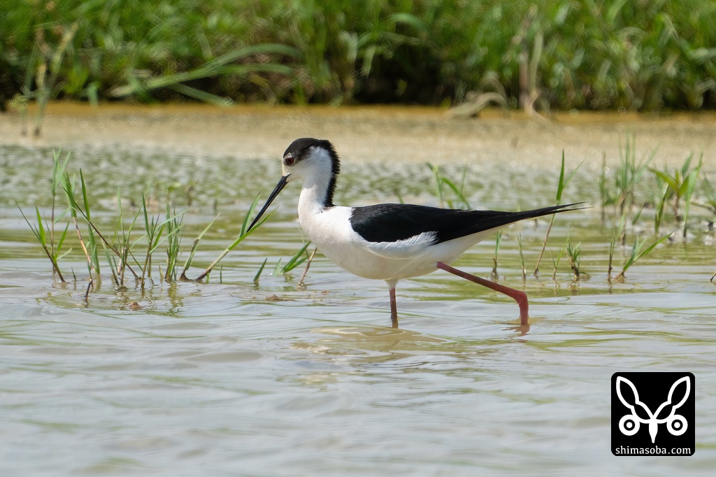 セイタカシギ成鳥オス夏羽。