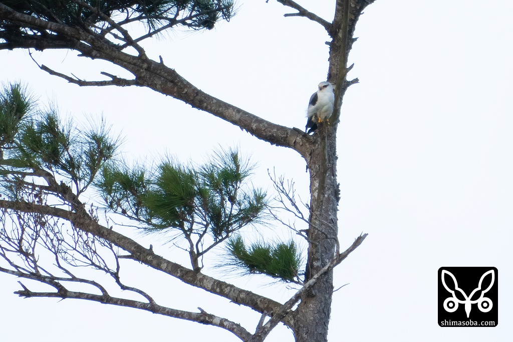 カタグロトビは自宅近くで繁殖中の個体。リュウキュウマツからカラスなどを警戒していました。