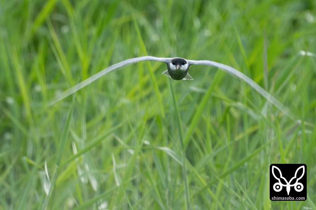 正面からクロハラアジサシ。逆光でしたがなんとか写りました。