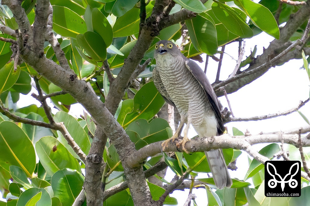 2019年から同じ場所で子育て中のリュウキュウツミ 。左足の骨折痕がトレードマーク。