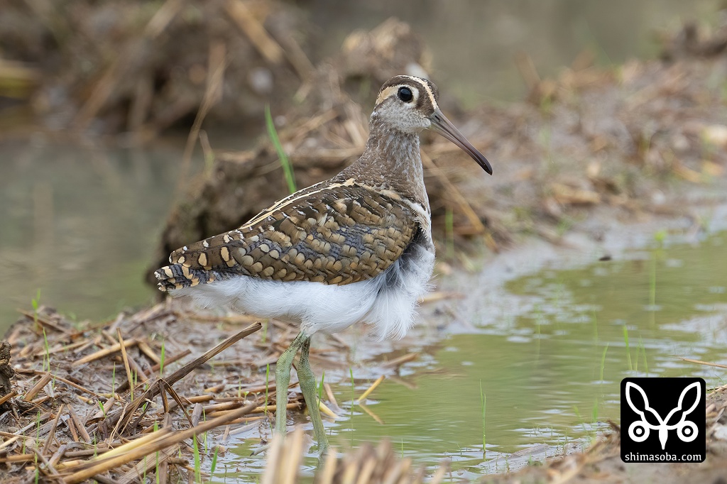 この田んぼで繁殖しているタマシギのオスが一羽でいました。子育ては終わったのでしょうか。