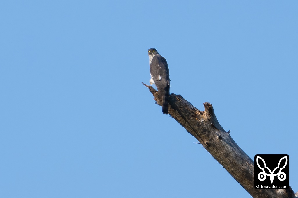 近所のツミのメス。巣外にいる時間が長いのでヒナが大きく育っているということでしょうか。
