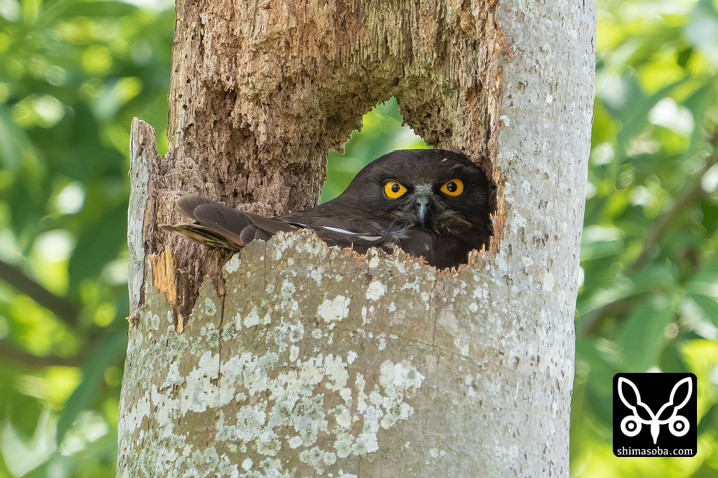 抱卵中のアオバズク。何年か前にアカショウビンが繁殖していたヤエヤマヤシが折れた跡地での繁殖。