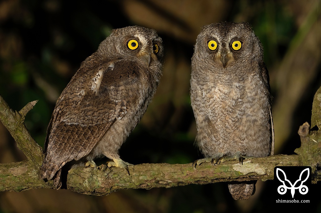 リュウキュウコノハズクの巣立ちビナ2羽。 昨年は3羽が巣立った ペアですが、ことしは2羽だけのようでした。