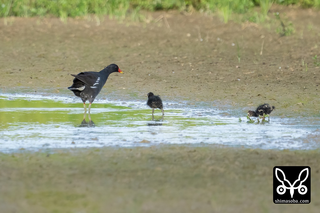バンの繁殖はほとんど終わって、幼鳥を見る機会が増えているのですが、まだ小さなヒナを抱えたペアもいました。
