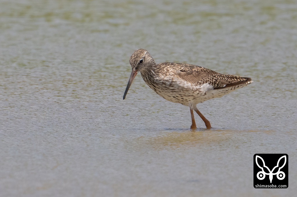 同じくオオメダイチドリ第1回夏羽。後ろはアオアシシギ。
