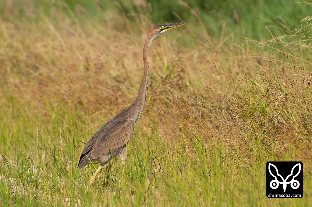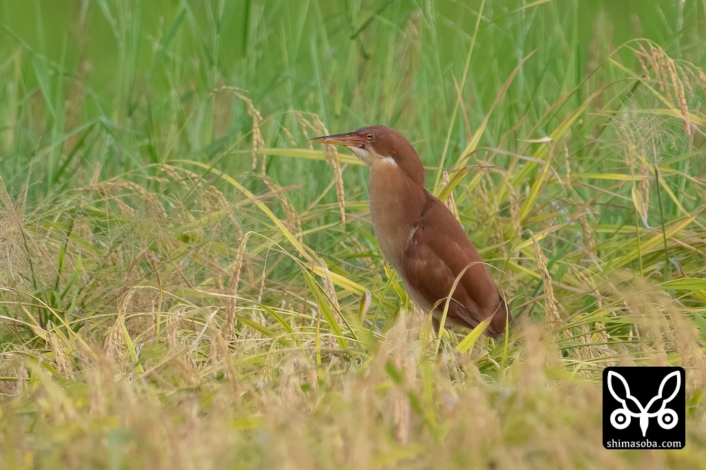 茂みから出てきたリュウキュウヨシゴイのオス。