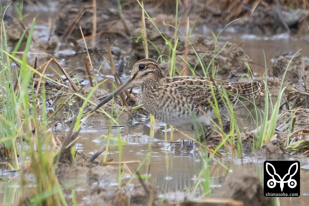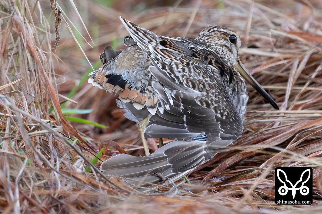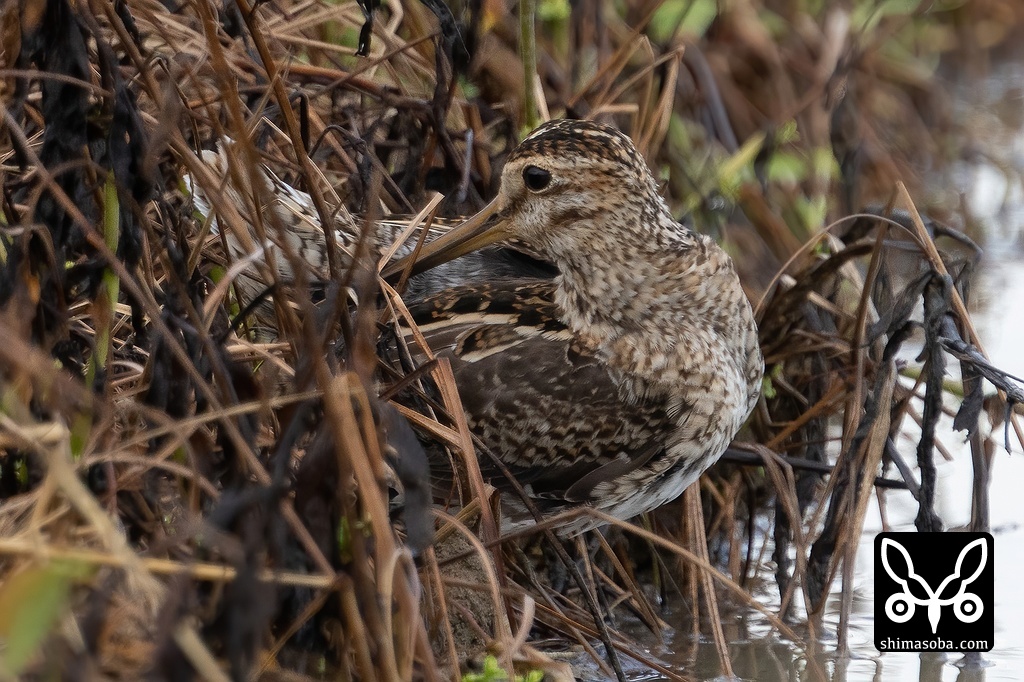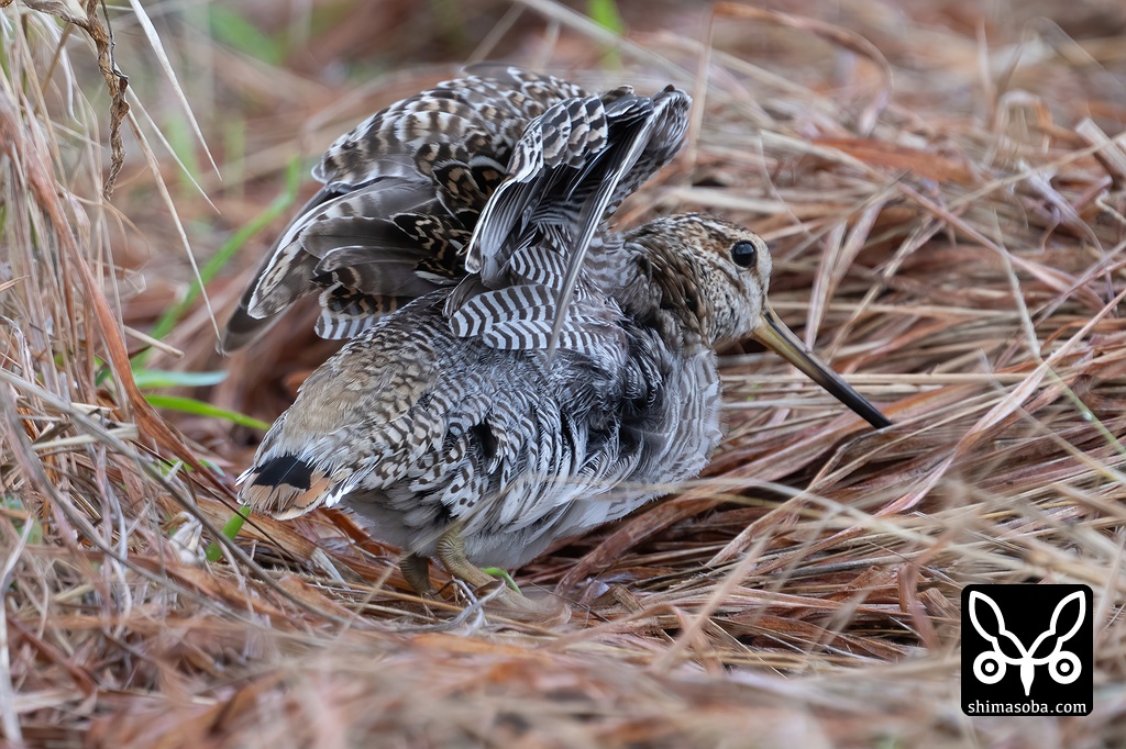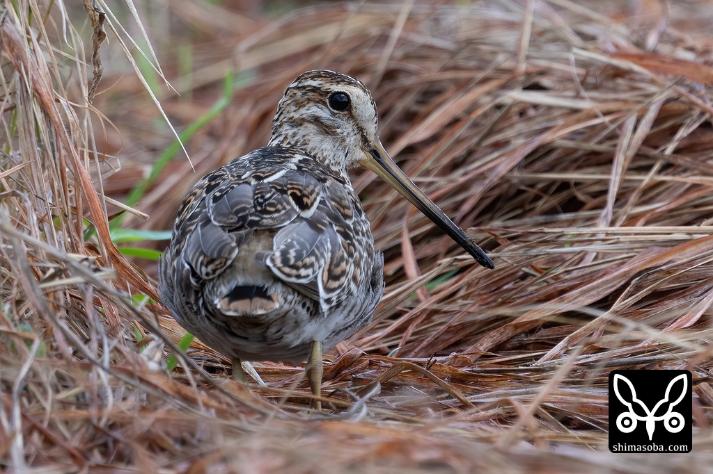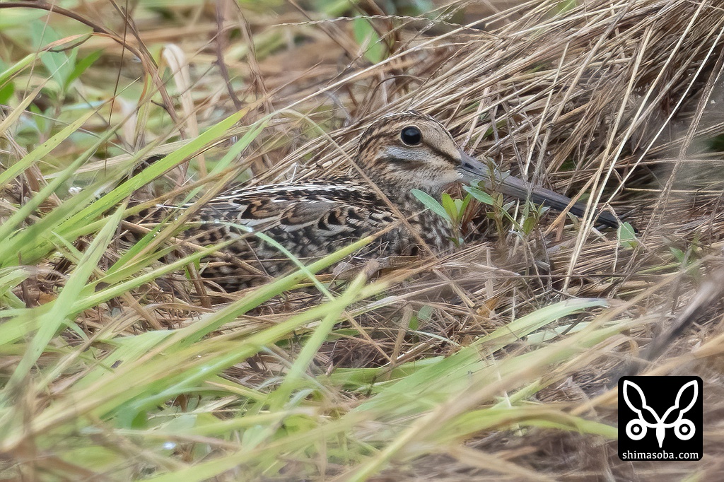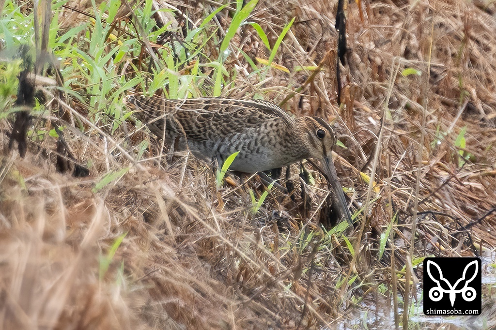 草むらに隠れるハリオシギ。