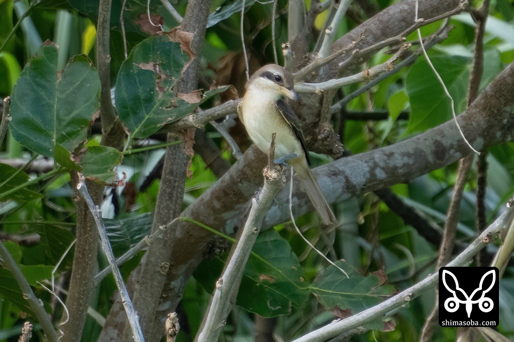 シマアカモズ第1回冬羽。尾羽の最外部がほかよりも短いのが気になりますね。