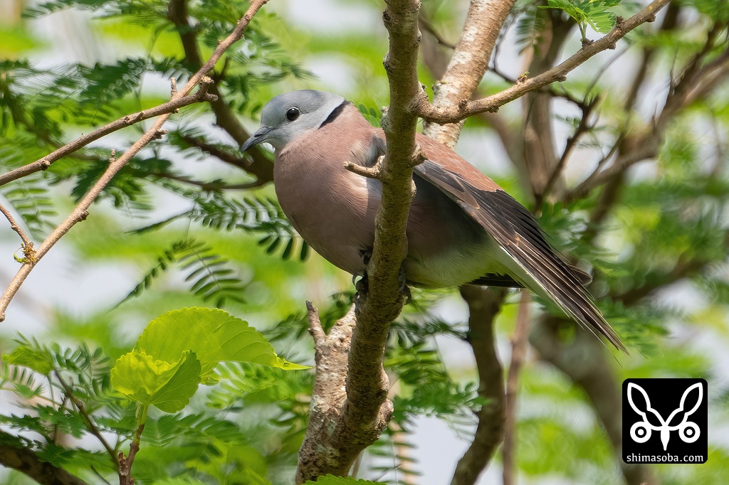 ベニバトのオス。一見、成鳥に見えますが換羽が進んだ幼鳥です。