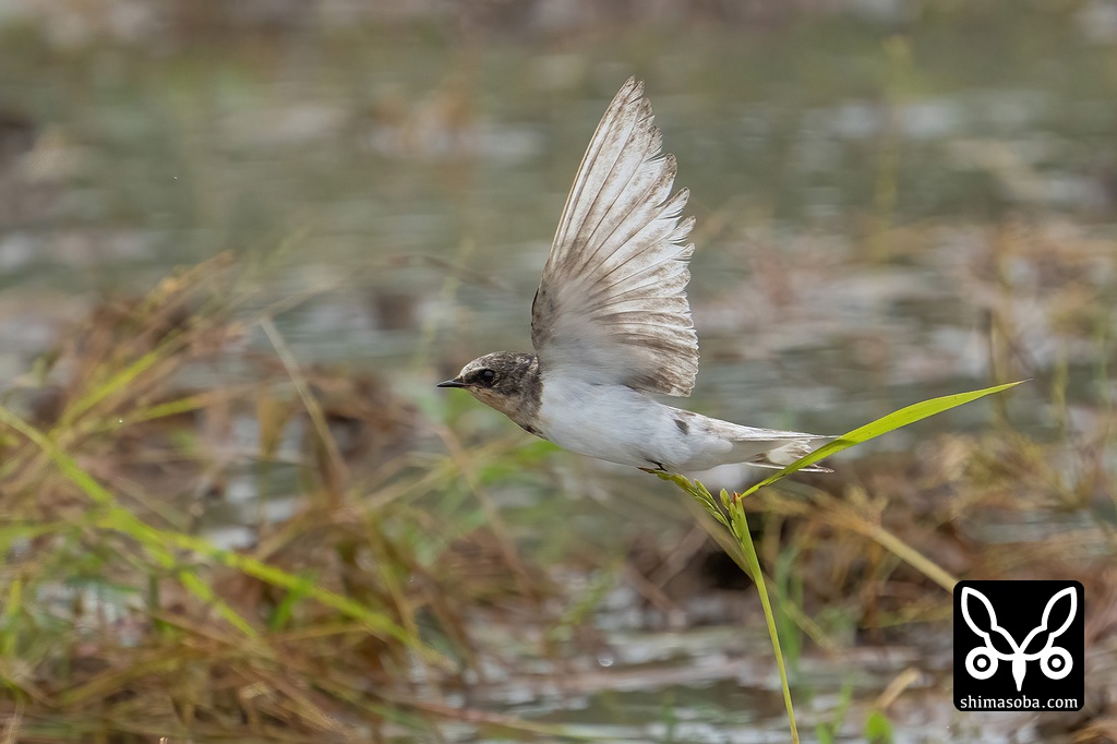 ツバメ幼鳥。上から見下ろす形で少し撮りにくかったのですが、おかげで背面はよく見えました。