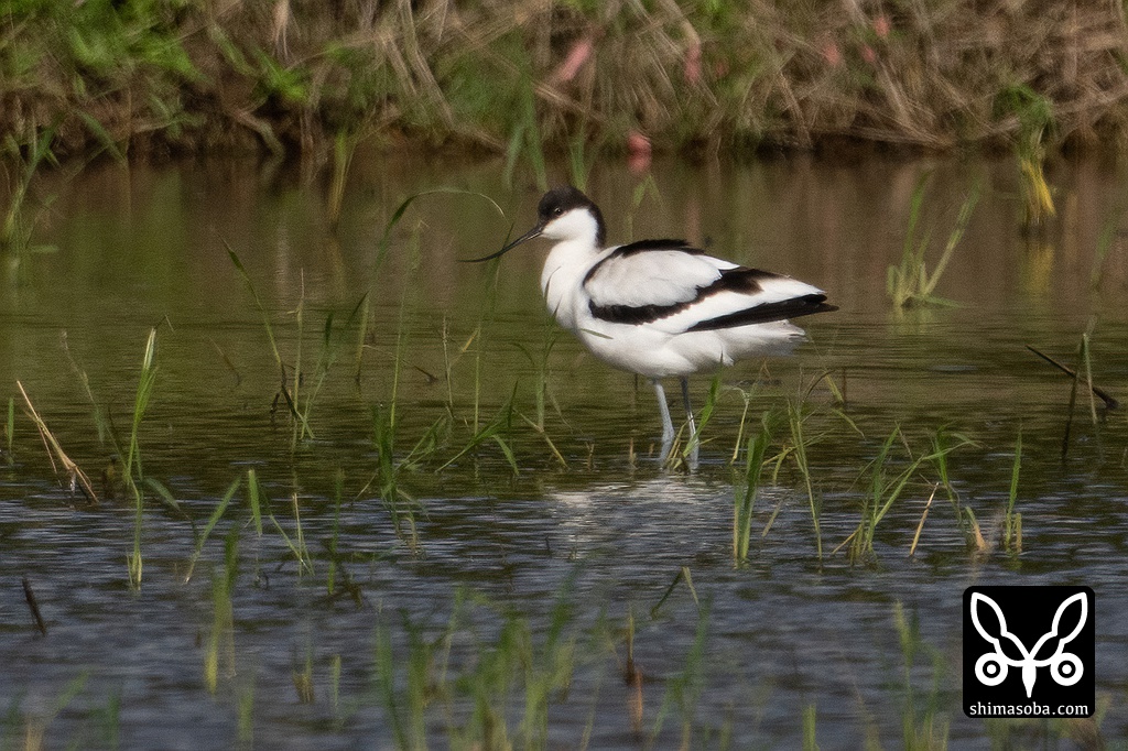 数日前から滞在中のソリハシセイタカシギ。採餌や水浴びなどリラックスした様子です。