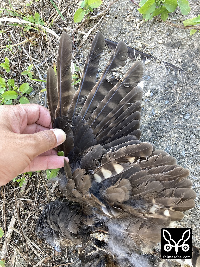 こちらは勤め先近くの住宅街で見つけたアオバズクの死骸。場所的に移動個体だと思われます。