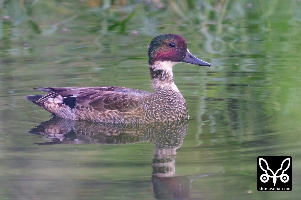 石垣島では珍しいヨシガモ。エクリプスから繁殖羽へ換羽中。