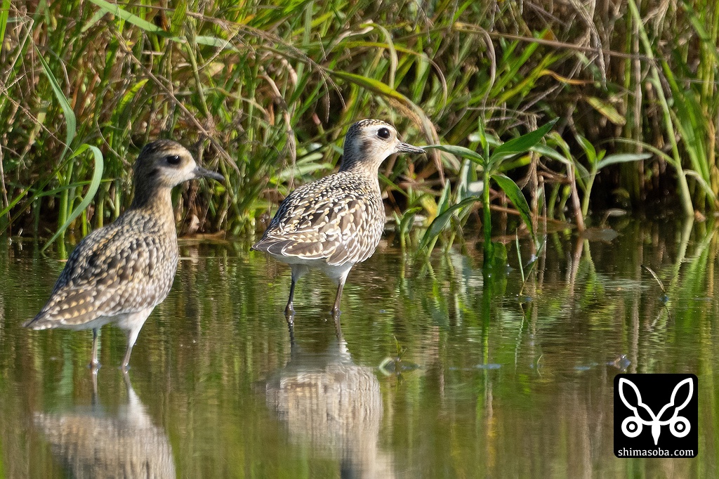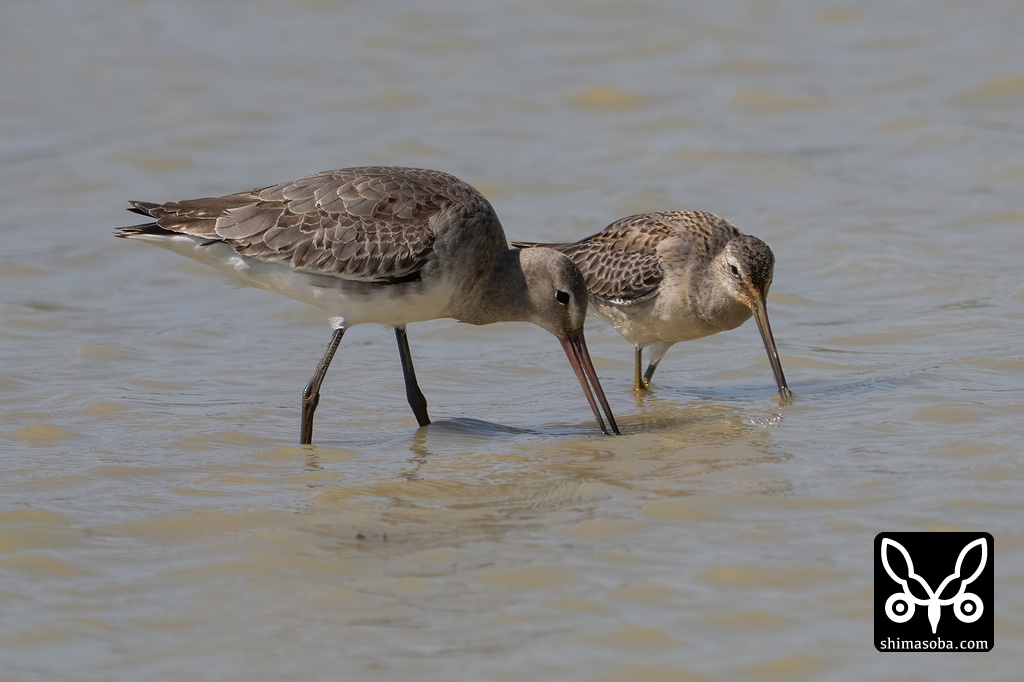 オグロシギとオオハシシギ。両方とも幼鳥です。