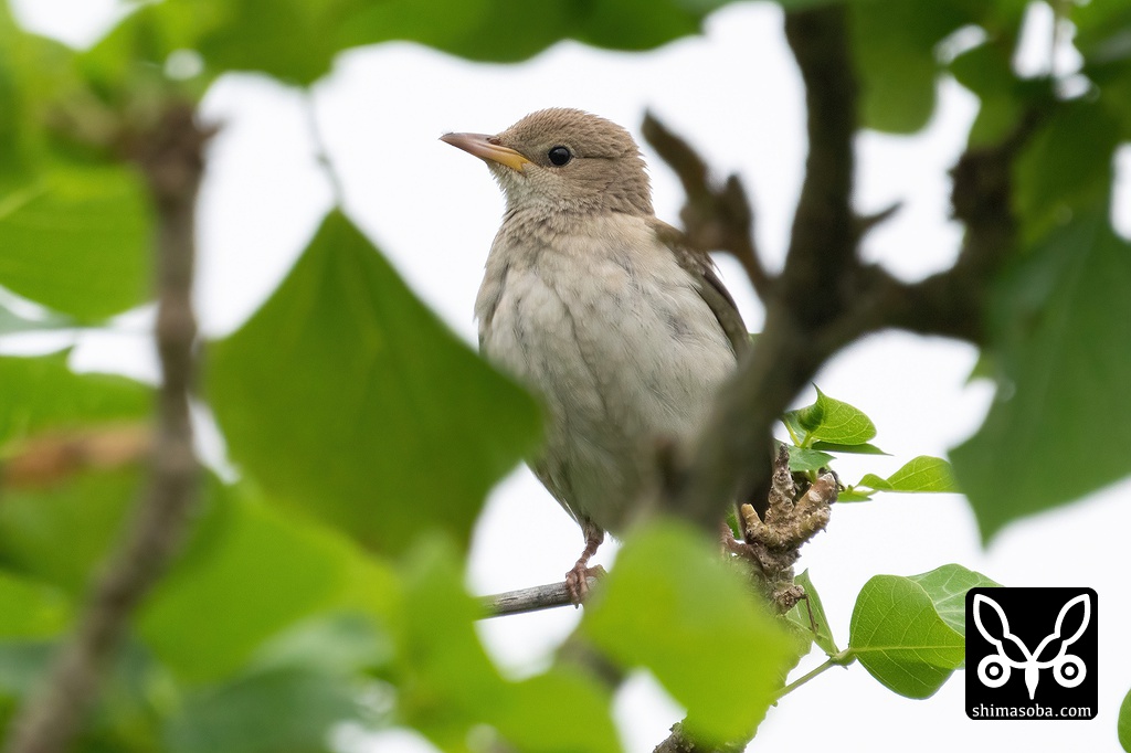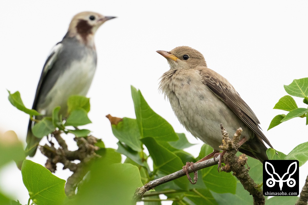 バライロムクドリ幼鳥(右)。ほぼ幼羽ですが、第1回冬羽が少し出ています。