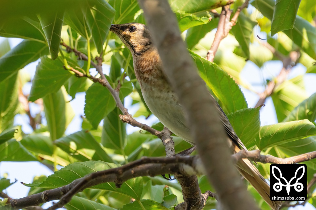 隠れているつもりのハチジョウツグミ。