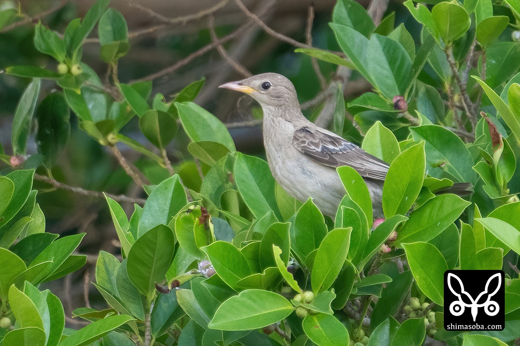 バライロムクドリの幼鳥。換羽が進んできています。春まで滞在したらあの美しい姿が拝めるのですが…。