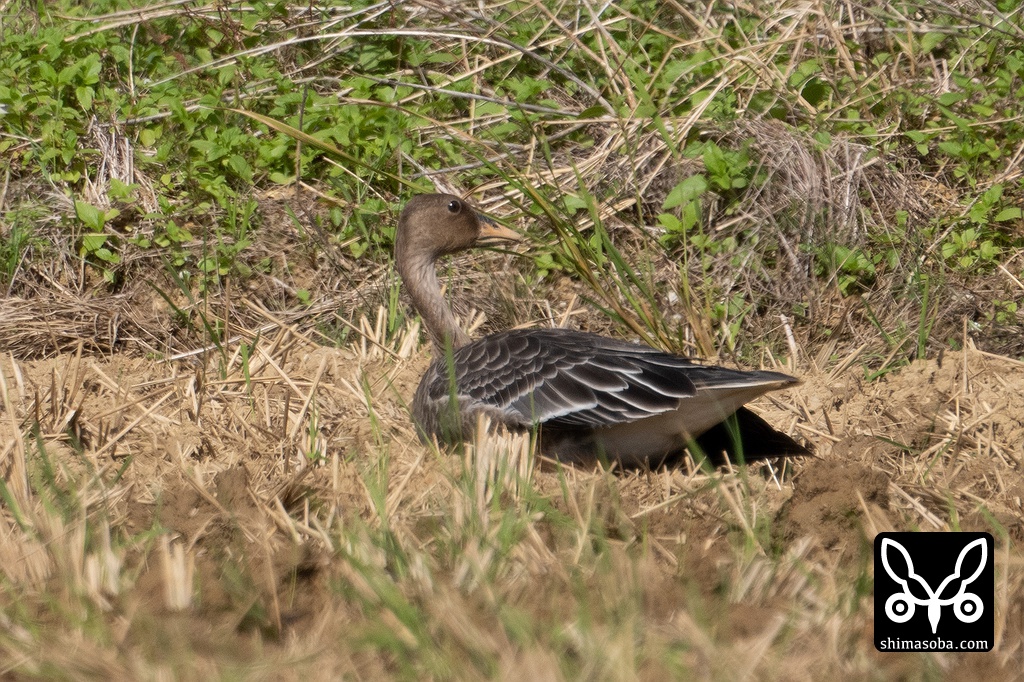 ヒシクイの幼鳥が1羽で休んでいました。