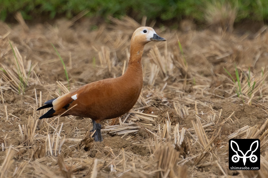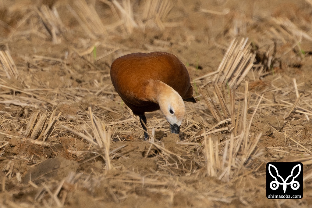 刈り取り後の田んぼにアカツクシガモのメス成鳥が飛来しました。