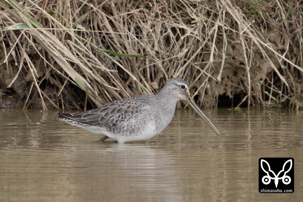 滞在2カ月となったオオハシシギ。すっかり冬羽に衣替え。