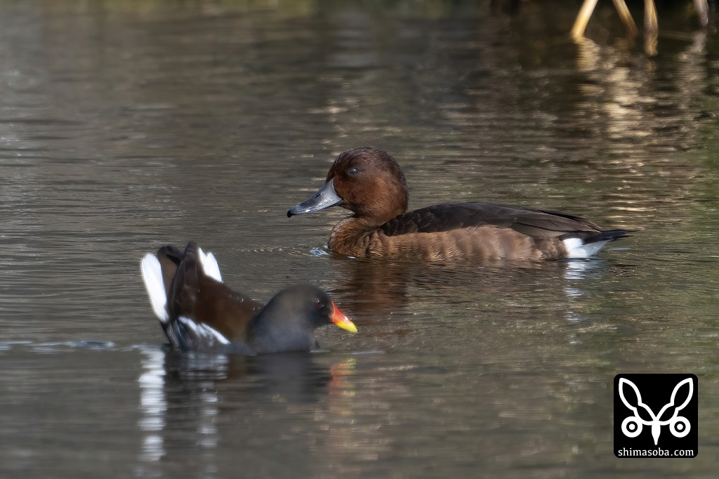 沈砂池にはメジロガモのオスとメスが逗留中。両方とも幼鳥です。
