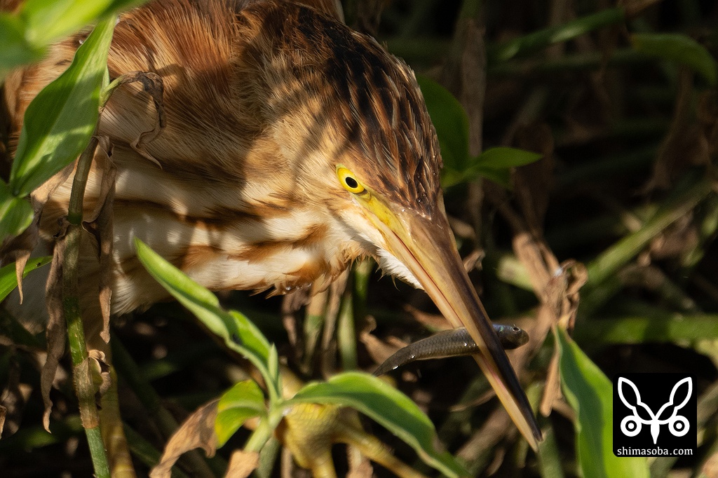 草むらに身を潜めるヨシゴイ幼鳥。