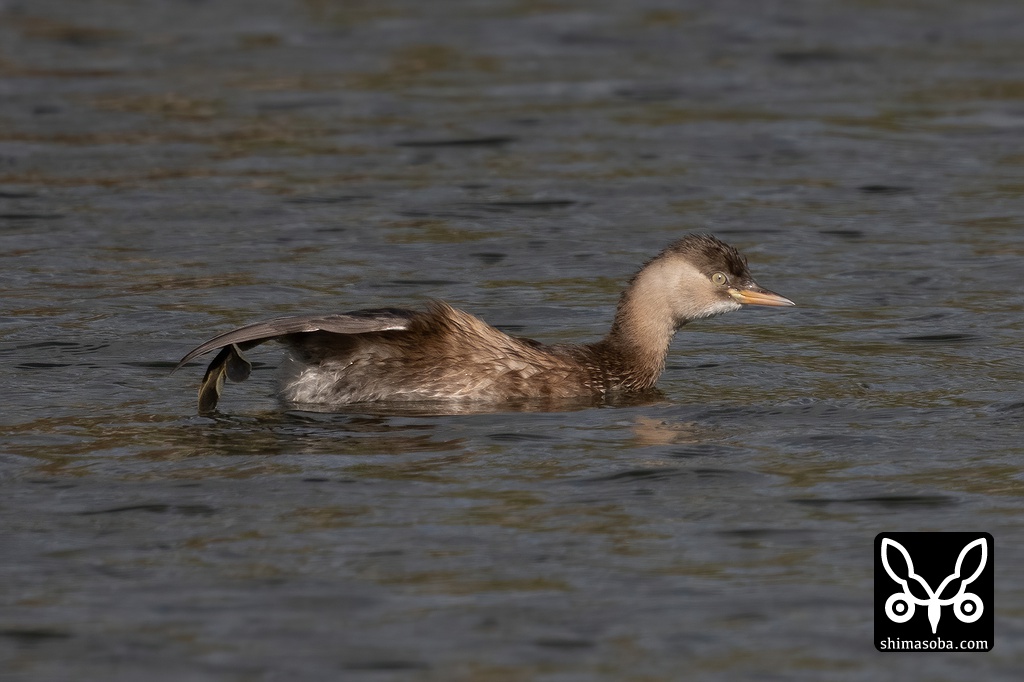足を水面に伸ばすカイツブリ。