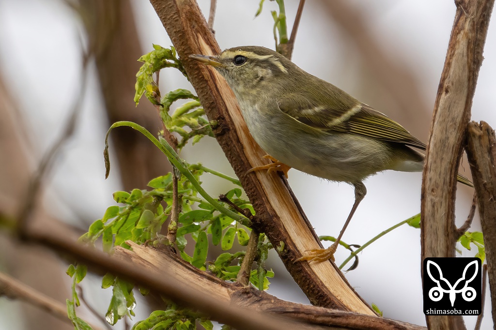 枝を忙しく渡りながら餌を探すキマユムシクイ。