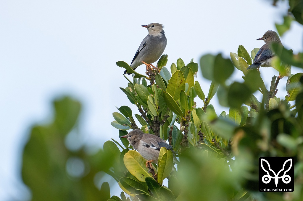 ギンムクドリ。上がオスで下の2羽がメスです。
