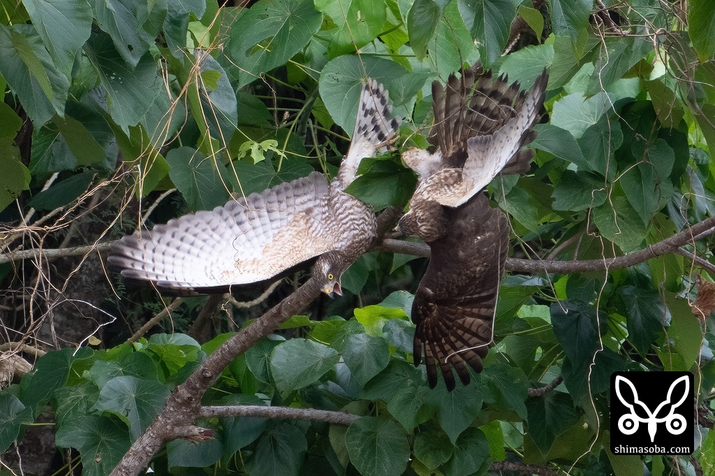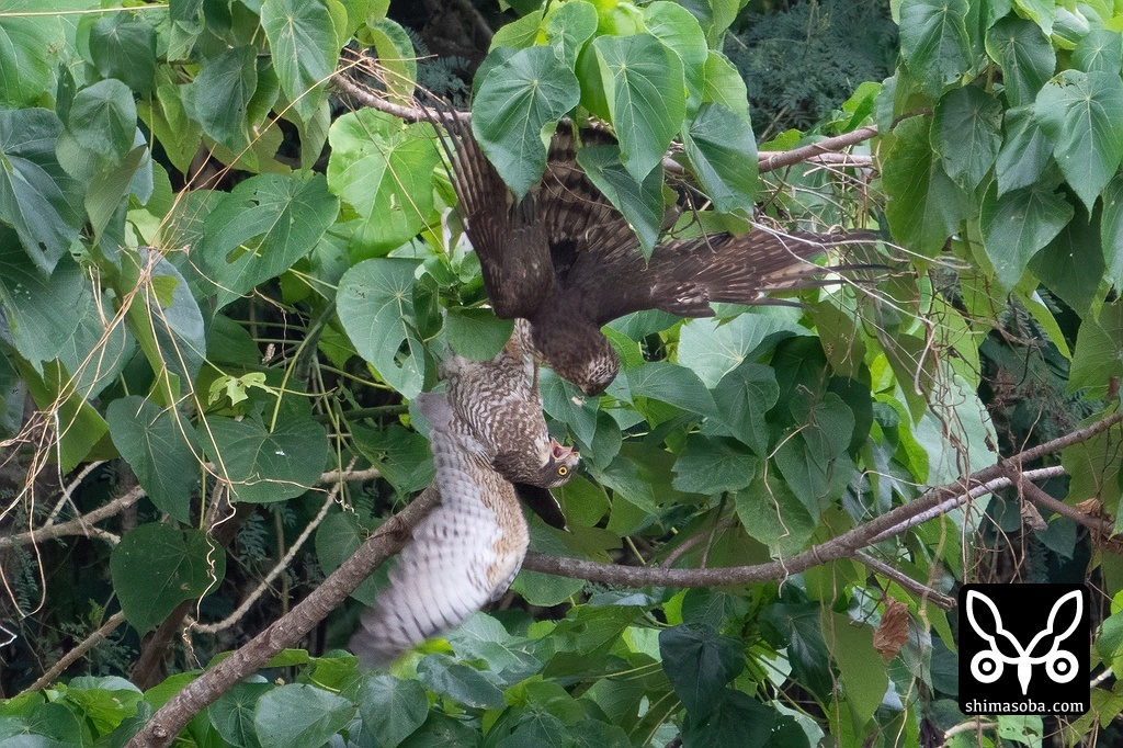 カンムリワシ幼鳥、ハヤブサ、サシバの戦い(動画あり)