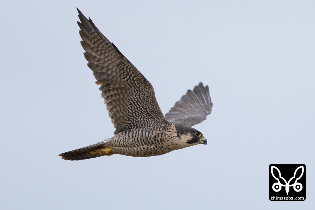 カモの方へ向かうハヤブサ成鳥メス。