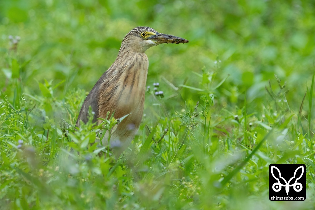 10日ほど前に見つけたジャワアカガシラサギ が3羽に増量して滞在中。緑がきれいな環境でミミズが多く発生しているようです。