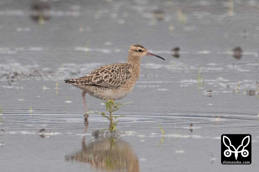 レンコン畑にホウロクシギ。けがでもしたのか、左目が見えていないようでした。