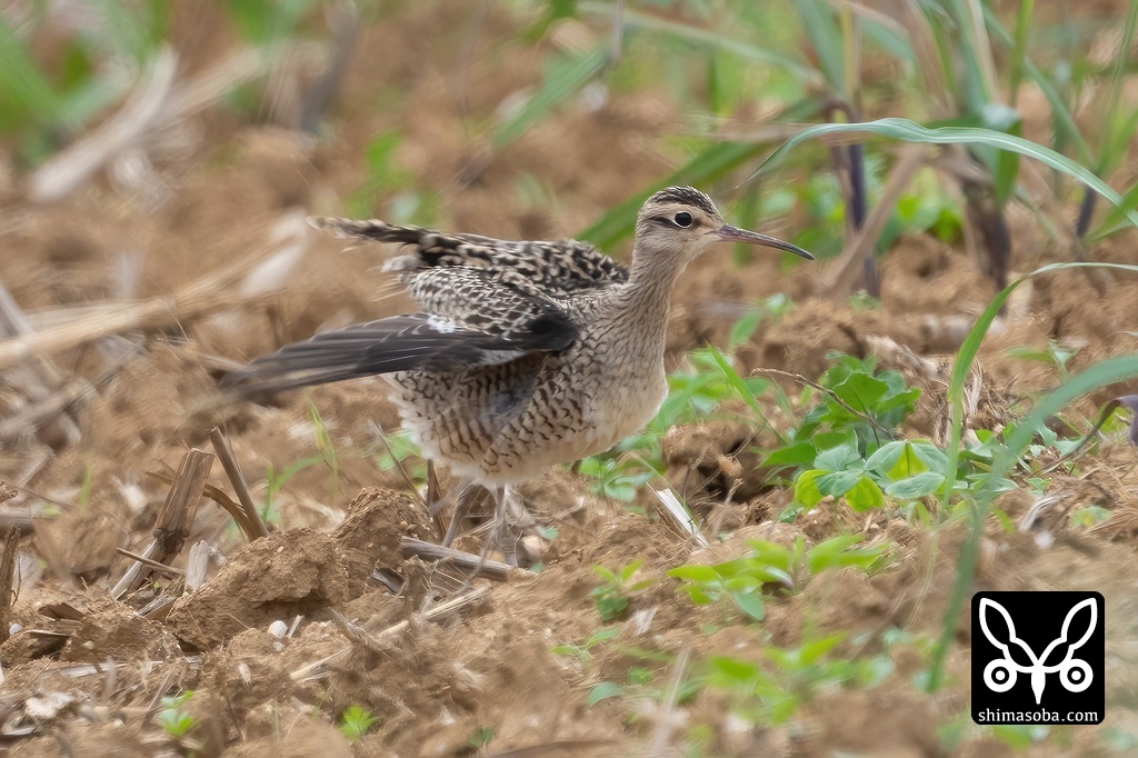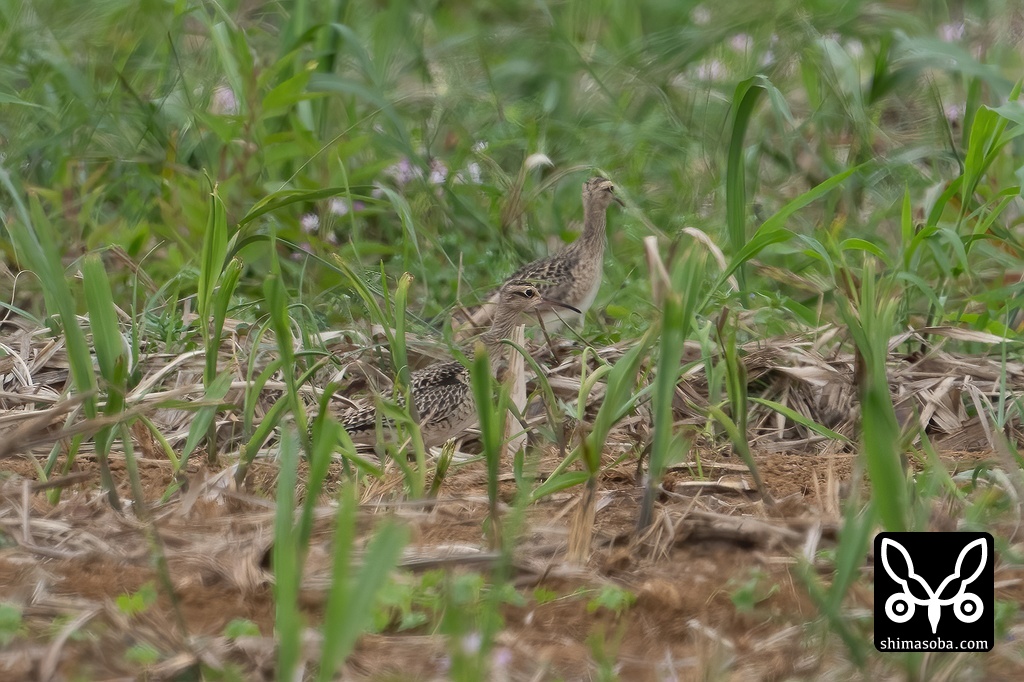 最初はこんな感じで遠く、サトウキビの丈がコシャクシギより高く見にくかった。