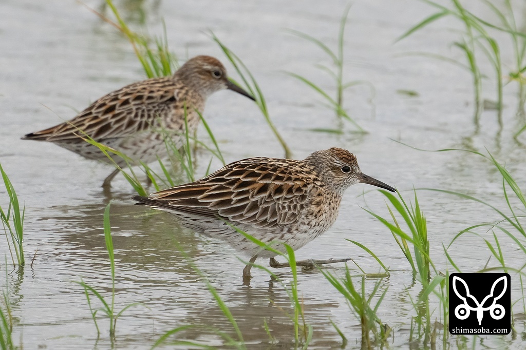 田んぼではウズラシギやタシギ、アオアシシギ、コアオアシシギなど渡り途中の個体が入れ替わりで立ち寄っています。