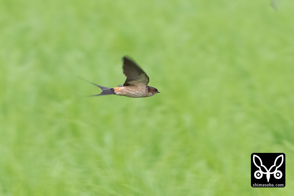 コシアカツバメ、ヒメアマツバメ、ショウドウツバメ、ツバメの4種がまざった群れも飛来。天気が悪い中、田んぼを飛び回りながら餌をとっていました。
