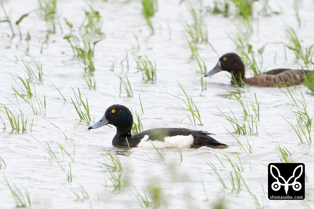 この時季には非常にめずらしいキンクロハジロとヒドリガモも複数で飛来しました。