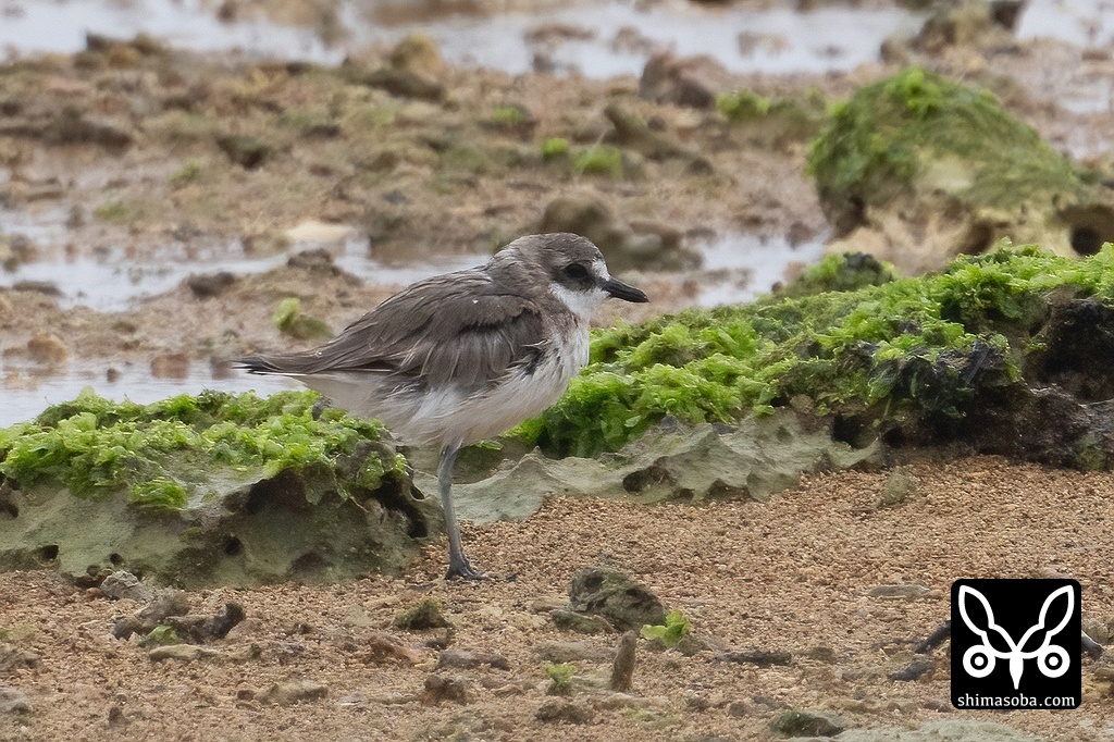 春の渡りもほぼ終わったので数は少ないですが、海岸にはオオメダイチドリやメダイチドリ、ソリハシシギ、アカアシシギなどが滞在しています。そんな中、なぜかマガンが1羽だけいました。ほとんどワンタッチでどこかへ飛んでいってしまいました。
