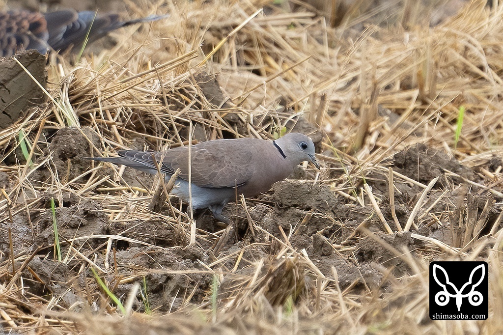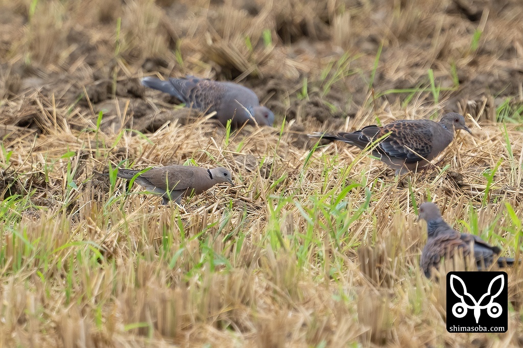 稲刈り後の田んぼにはキジバトに混じってベニバトが飛来していました。こちらは秋の渡りシーズンに向けて増加し、幼鳥も見られるようになります。